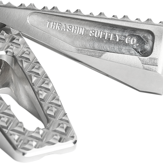 Caracteristicas: Grip surface with a slight radius for better shifting and braking while maintaining maximum grip Platform is constructed of tough 6061 billet aluminum Stainless steel clevis Made in the U.S.A.