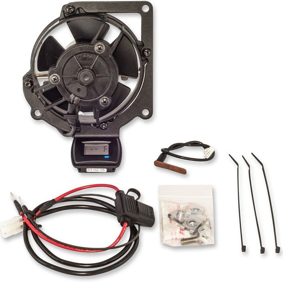 Caracteristicas: Electronic temperature sensor automatically activates the fan, keeping your engine in its optimum temperature range Programmable set-point fan switch Improved reliability over mechanical switching solutions Installs without cutting of fluid lines Kit includes 4" SPAL fan, TTV temperature meter, radiator bracket, temperature sensor, and wire harness