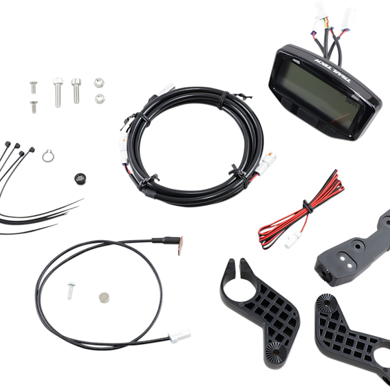 Caracteristicas: Speed/Distance/Voltage/Temperature/Clock Speedometer functions: current, average, maximum; selectable MPH/KPH Distance functions: trip, odometer, adjustable distance; selectable mile/kilometer Voltage function: voltage, maximum, minimum Temperature functions: engine temp, ambient temp, max engine temp, temp with LED alerts, model-specific sensors; selectable F/C scale Clock functions: hour meter, stop watch, ride time, accumulated ride time; selectable 12/24 hour display Maintenance: oil reminder, wrench reminder Power input: accepts any power input AC/DC, auto-switch to internal battery, permanent memory (data never lost) Waterproof design with high-intensity LCD white backlight display Optional top-mount gauge mount available separately - See Related Products