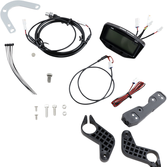 Caracteristicas: Speed/Distance/Voltage/Temperature/Clock Speedometer functions: current, average, maximum; selectable MPH/KPH Distance functions: trip, odometer, adjustable distance; selectable mile/kilometer Voltage function: voltage, maximum, minimum Temperature functions: engine temp, ambient temp, max engine temp, temp with LED alerts, model-specific sensors; selectable F/C scale Clock functions: hour meter, stop watch, ride time, accumulated ride time; selectable 12/24 hour display Maintenance: oil reminder, wrench reminder Power input: accepts any power input AC/DC, auto-switch to internal battery, permanent memory (data never lost) Waterproof design with high-intensity LCD white backlight display Optional top-mount gauge mount available separately - See Related Products