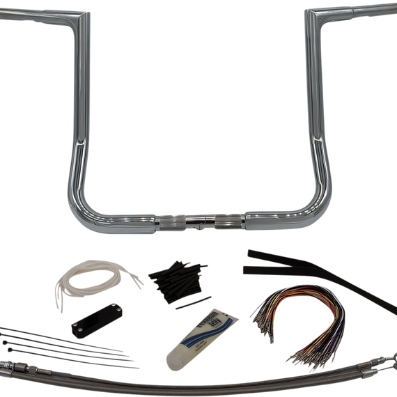 Caracteristicas: EZ Install means no more need to fight internal wiring; you can install wiring in minutes Kits include only the necessary components needed to install handlebars based on the model and height of handlebar Certain models and heights of handlebar kits will include a brake line extension, clutch line/cable extension and wiring harness, while some of the shorter handlebar kits will only contain a wiring harness or a clutch line/cable extension; each kit is priced accordingly Black handlebars come with black lines/cable extensions; chrome handlebars come with braided lines/cable extensions CNC mandrel-bent from 1-1/4" diameter x .120" wall heavy tube Bolt together, two-piece handlebar that takes up half the shelf space and is easy to ship Made in the U.S.A. These handlebar kits do not replace existing lines, but they extend them Patent No. 10,946,926