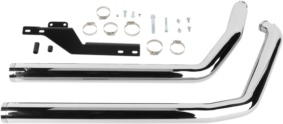 Caracteristicas: Perfect update to traditional drag pipes; maintains clean, pure drag-pipe appearance Full-length, 2.5" heat shields with a 222° wrap around for a non-bluing appearance Capped with machined and chromed billet tips Removable performance cores Power with social responsibility Made in the U.S.A.