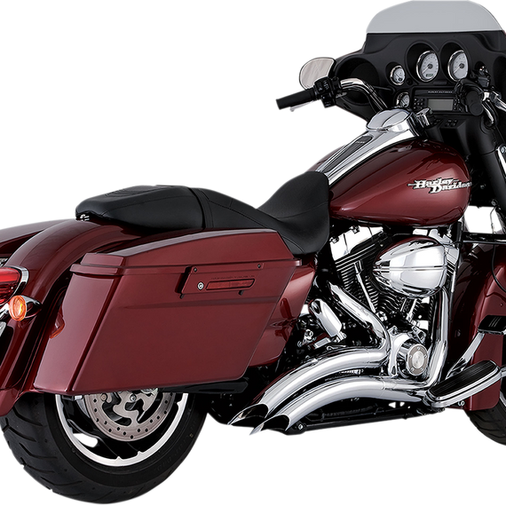 • Black pipes are all slash-cut and feature heat shields coated with a race-quality matte black ceramic contrasted with a signature chrome badge and tips