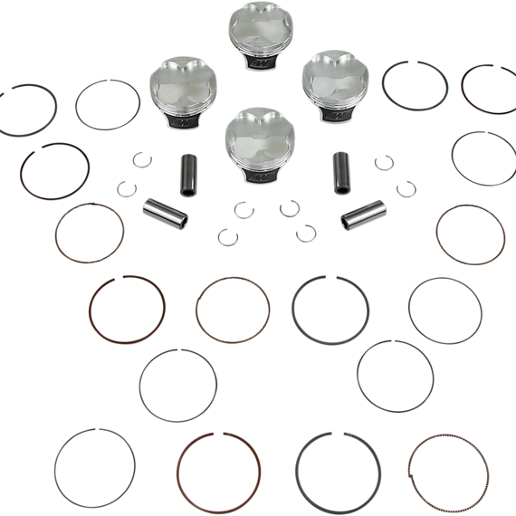 Caracteristicas: Complete engine kits include pistons, ring sets, pistons pins, retainer clips and head gasket All Wiseco pistons are forged from aerospace aluminum alloys on Wiseco's state-of-the art forging presses Built on a legacy of championships for over 60 years by American craftsmen Wiseco pistons have the latest dyno-tested technology to out-perform the competition