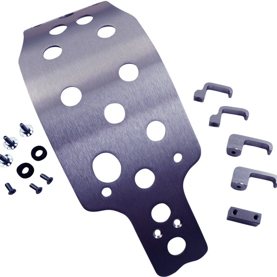 Caracteristicas: CNC-machined from aircraft-grade 6061 T-6 aluminum Specific design and fit for each make and model Covers to protect frame rails but does not extend beyond rails Oil drain access hole pre-cut into the plate for easy oil changes without having to remove the skid plate CNC-machined aluminum brackets with quality hardware for secure mounting Made in the U.S.A.