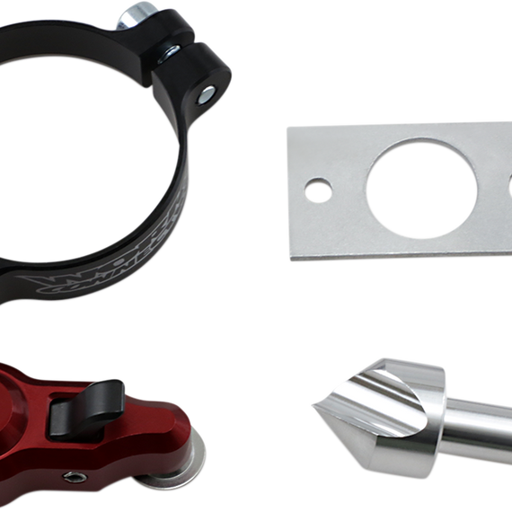 Caracteristicas: The "next-generation" in start devices Spring-less design delivers positive engagement and consistent release "Easy set by rider" start trigger CNC-machined exclusively from aircraft-grade aluminum Lightweight, complete assembly only 50 grams Custom drill guide template and countersinking tool included Detailed installation instructions include large step-by-step photos Laser-etched logo  U.S. Patent Nos. 8,727,081 and 9,394,963 Engineered, manufactured and assembled in the U.S.A.