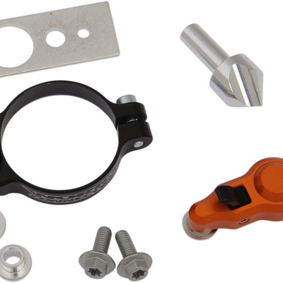 Caracteristicas: The "next-generation" in start devices Spring-less design delivers positive engagement and consistent release "Easy set by rider" start trigger CNC-machined exclusively from aircraft-grade aluminum Lightweight, complete assembly only 50 grams Custom drill guide template and countersinking tool included Detailed installation instructions include large step-by-step photos Laser-etched logo  U.S. Patent Nos. 8,727,081 and 9,394,963 Engineered, manufactured and assembled in the U.S.A.