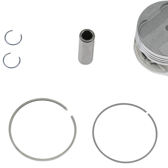 Caracteristicas: Quality and construction that meet or exceed OEM Feature improved E-clip design Kits contain piston, rings, pin and clips Rings available separately