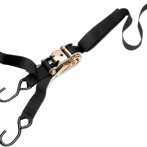 Caracteristicas: 1" nylon web strap, 6' long with built-in assist; rated at more than 1,200-lb. straight pull strength 400-lb. working load limit Ratchet for easy cinching Vinyl-coated 3/8" hooks