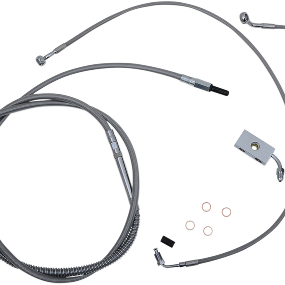 Caracteristicas: Take "cable calculation" headaches out of swapping handlebars Standard kits include the correct length brake/clutch lines and wire extensions to complete a handlebar swap; electrical wire extensions not included (available separately) Standard kits include clutch line, brake lines, chrome "T" brake line junction, banjo bolts, fittings and copper crush washers Made in the U.S.A. Kits are based on using 2" risers with Ape Hanger handlebars