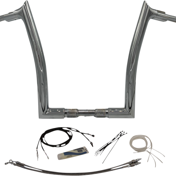 Caracteristicas: Adjustable 1-½” collar next to handlebar controls for custom look Revolutionary bolt-together two-piece handlebar design that takes up half the shelf space, is easy to ship and even faster to install CNC mandrel-bent from 1-1/2" diameter x .095" wall heavy tube EZ install means no more need to fight internal wiring; install handlebar wiring in minutes Billet machined top with a large internal machined radius allows for EZ pulling of wiring (non-welded top corner) Install kits include everything needed to install the handlebars in half the time of other kits due to our design that only extends the existing clutch cable/ clutch line and brake lines Handlebars are knurled and notched for TBW applications Made in the U.S.A. Accepts OEM heated grips Patent No. 10,946,926