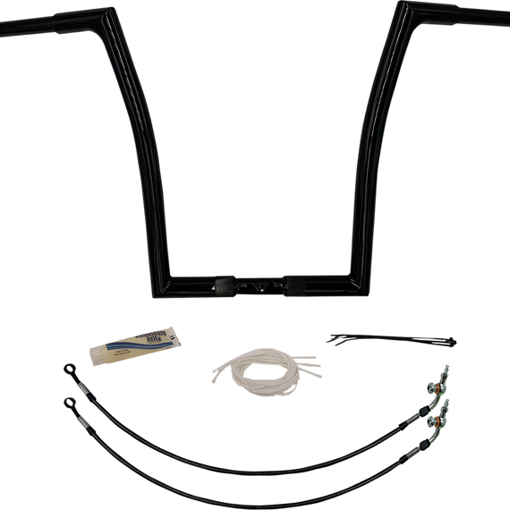 Caracteristicas: Bolt together, two-piece handlebar that takes up half the shelf space and is easy to ship CNC mandrel-bent from 1-1/4" diameter x .120" wall heavy tube EZ Install means no more need to fight internal wiring; you can install wiring in minutes Certain models and heights of handlebar kits will include a brake line extension, clutch line/cable extension and wiring harness, while some of the shorter handlebar kits will only contain a wiring harness or a clutch line/cable extension; each kit is priced accordingly Black handlebars come with black lines/cable extensions; chrome handlebars come with braided lines/cable extensions Knurled and notched for TBW applications Made in the U.S.A. Kits include only the necessary components needed to install handlebars based on the model and height of handlebar Patent No. 10,946,926