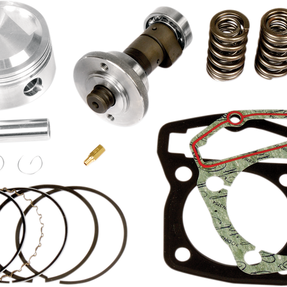 Caracteristicas: Includes BBR's high performance camshaft and valve springs for added performance This cam features higher lift and duration than stock Complete kit includes piston, rings, pin, clips, BBR MX cam, valve springs and gaskets Adds up to 3.5 HP Includes head and base gaskets Makes more aggressive style of power Bike still starts easily and idles smooth Same camshaft as used by the BBR Race Team Requires professional boring of your stock cylinder