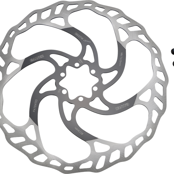 Caracteristicas: Fixed-mount oversize brake rotor Wave® pattern keeps brake system cooler by allowing air to pass over every point of the brake pad surface High-carbon stainless steel construction Laser-cut (never stamped) and double-disc parallel ground to ensure perfect parallel flatness Outstanding brake performance, even in the most aggressive conditions Anti-corrosion treatment on all non-contact surfaces Measures 223mm x 2mm thick, six-bolt universal mounting pattern Weighs approximately 229 grams Front or rear application May require brake caliper adapter bracket (sold separately)