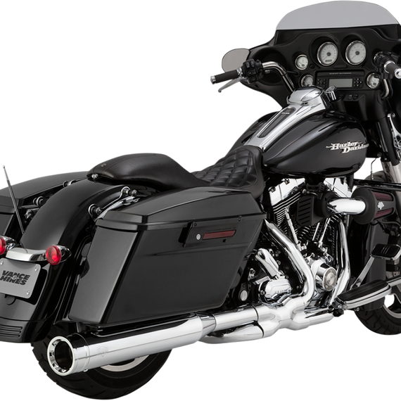 Caracteristicas: Massive 4.5" diameter slip-on mufflers are finished with equally large CNC machined billet end caps Slip-ons feature a big deep-toned rumble thanks to their large fiberglass wrapped 2.5" perforated core baffles Made in the U.S.A.