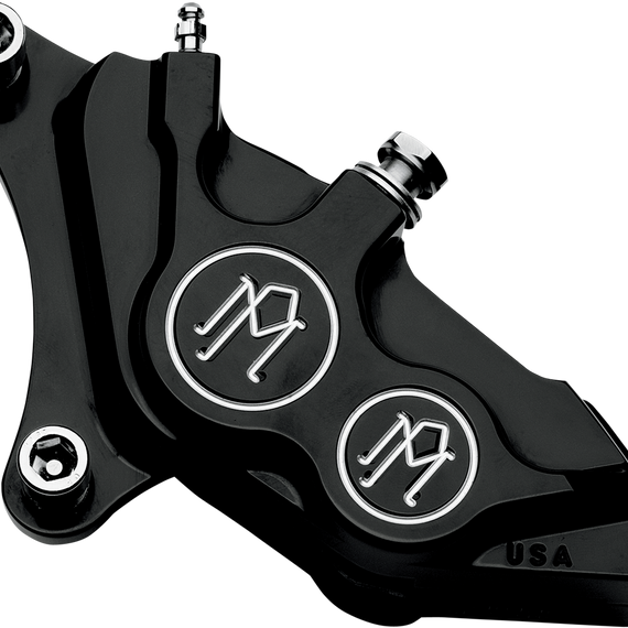 Caracteristicas: Feature differential bore pistons that apply a different force at both the leading edge and the trailing edge of the pads to ensure superior braking Dual-disc applications require the separate purchase of a left and right front caliper Include brake pads, bleeder screw and 3/8"-24 banjo bolt Made in the U.S.A. Calipers listed for 00-03 XL models will fit 04-13 XL models if used with a 9/16" bore master cylinder. Will not fit FXD, FXR, XL models with spoke wheels.