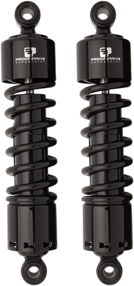 Caracteristicas: Designed specifically for Harley models The 412's simple, durable design makes them a cost effective improvement to your motorcycle's suspension performance A five position cam style spring load preload adjuster lets you easily dial in your ride Some or all shocks listed have TüV approval. Refer to most recent TüV certificate for current listing All shocks are measured center-of-eyelet to center-of-eyelet. When installing shocks on 1986-2015 XL models, it may be necessary to modify or space the chain/belt guard to allow proper clearance. A shock which is slightly longer than stock may alter the head angle slightly and provide somewhat quicker steering. A shock which is slightly shorter than stock may alter the head angle slightly and provide somewhat slower steering. Heavy Duty Applications are recommended for bikes that are operated at or near the manufacturer's maximum load rating over 50% of the time. Before purchasing or attempting to install shocks that are different than the OEM length, confirm that your wheel travel can be altered without causing clearance issues, such as swingarm/axle to exhaust contact as well as chain/belt guard or tire contact.