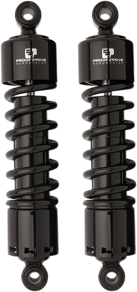 Caracteristicas: Designed specifically for Harley models The 412's simple, durable design makes them a cost effective improvement to your motorcycle's suspension performance A five position cam style spring load preload adjuster lets you easily dial in your ride Some or all shocks listed have TüV approval. Refer to most recent TüV certificate for current listing All shocks are measured center-of-eyelet to center-of-eyelet. When installing shocks on 1986-2015 XL models, it may be necessary to modify or space the chain/belt guard to allow proper clearance. A shock which is slightly longer than stock may alter the head angle slightly and provide somewhat quicker steering. A shock which is slightly shorter than stock may alter the head angle slightly and provide somewhat slower steering. Heavy Duty Applications are recommended for bikes that are operated at or near the manufacturer's maximum load rating over 50% of the time. Before purchasing or attempting to install shocks that are different than the OEM length, confirm that your wheel travel can be altered without causing clearance issues, such as swingarm/axle to exhaust contact as well as chain/belt guard or tire contact.