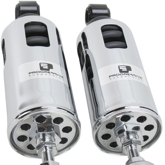 Caracteristicas: Fully adjustable for ride height and spring preload Tune suspension to match riding style Shocks feature a show chrome cover Pair of progressive-rate coil springs and purpose-designed monotube dampers provide superior suspension performance Dampers feature a nitrogen charge that eliminates internal oil cavitation and helps create a consistent ride while resisting heat-induced fade Shocks can be adjusted up to 2" lower than stock Heavy Duty Applications recommended for operating at or near manufacturer's maximum load rating over 50% of the time. Before purchasing or attempting to install shocks that are different than the OEM length, confirm that your wheel travel can be altered without causing clearance issues such as, swingarm/axle to exhaust contact as well as chain/belt guard or tire contact.