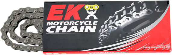 Caracteristicas: Super economical roller chain Standard chains have two-point pin riveting Special steel alloy, solid roller and pre-stretched, shot-peened parts Comes with clip-type master link