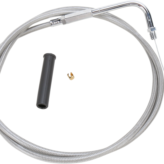 Caracteristicas: Cables feature polished-chrome fittings and stainless-steel braiding outer casings, tempered-steel inner conduit and an inner nylon liner for smooth operation and long life Braided cables feature outer housings coated with a non-yellowing clear covering for abrasion resistance Length given is the length of the outer housing only, excluding the elbow Cables will also fit late style Mikuni carbs