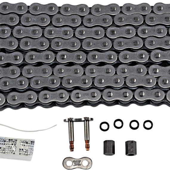 Caracteristicas: For competition and OEM replacement Features lightening holes, reduced friction and Quadra X-Ring design, which increases chain life from 1.5-2 times longer than a standard O-ring chain Comes with screw-type master link