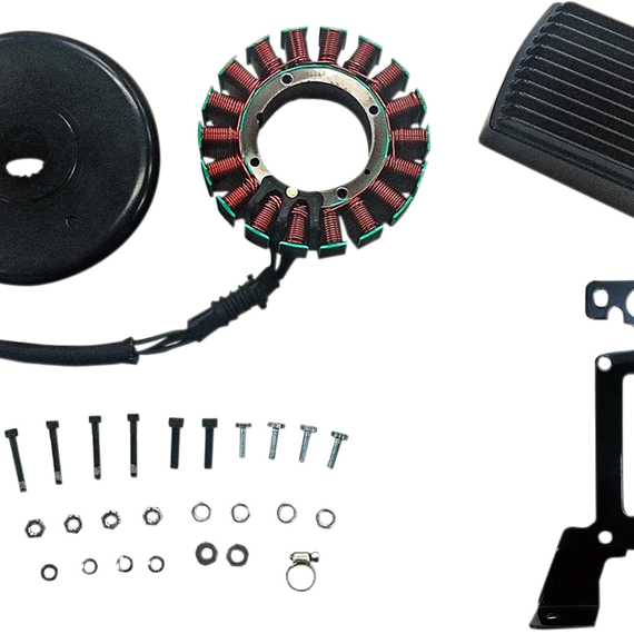 Caracteristicas: Engineered to provide 30% more power than stock system at idle 54A output at 4000 rpm provides enough power to eliminate dimming lights, reduced audio performance and under-performing heated gear Maximum power output of 793 watts (based on constant voltage cold data) Includes high-performance rotor, stator, voltage regulator and all gaskets and hardware for installation