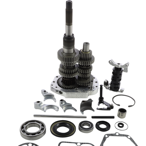 Caracteristicas: Includes polished trap door, all gears, mainshaft, countershaft, shifter drum, detent components, bearings, snap rings, gaskets and hardware Significantly smoother shifting than stock due to a roller detent shift drum with reduced inertia and gear dogteeth with lead-in ramping Gear ratio of 2.93 or 3.24 1st gear and .86 6th gear available Fits into stock and most aftermarket 5-speed transmission cases Made in the U.S.A.