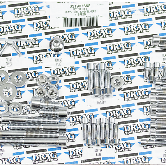 Caracteristicas: Contain socket-head bolts for cam, primary, generator, sprocket, rocker box, top motor mount, lifter base, point or magneto cover Made in the U.S.A.