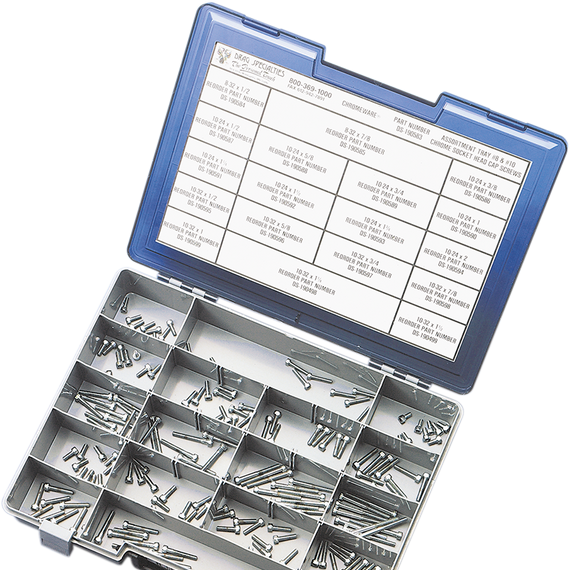 • Kits contain 18 sizes of fine- and coarse-thread #8 and #10 bolts