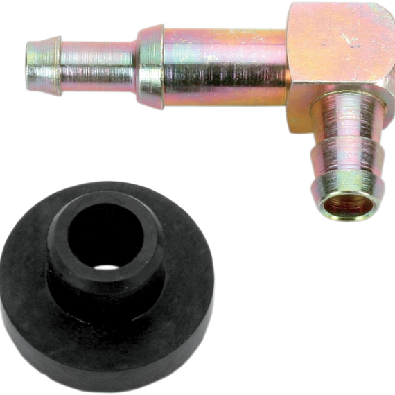 Caracteristicas: Metal gas tank fittings have rubber bushings to fit 1/2" holes in metal or plastic tanks Single, 90° push-in design is original equipment on many machines Fittings work well for custom applications