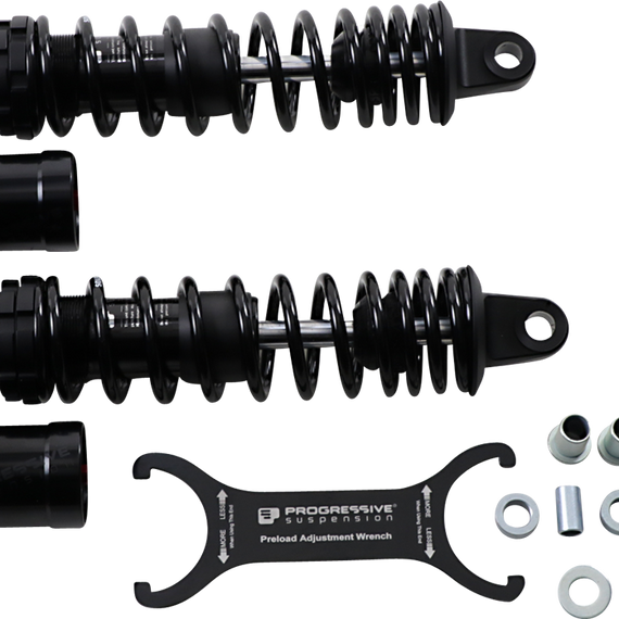 Caracteristicas: Designed for performance-oriented twin shock bikes Features piggyback reservoirs, high-pressure gas charge and deflective disc-valving, all packaged in a mono-tube style body Includes progressive rate springs The threaded pre-load adjustment and external compression adjustment knob allow for fine tuning to provide optimum performance rider weight or riding style Before purchasing or attempting to install shocks that are different than the OEM length, confirm that your wheel travel can be altered without causing clearance issues, such as swingarm/axle to exhaust contact as well as chain/belt guard or tire contact.