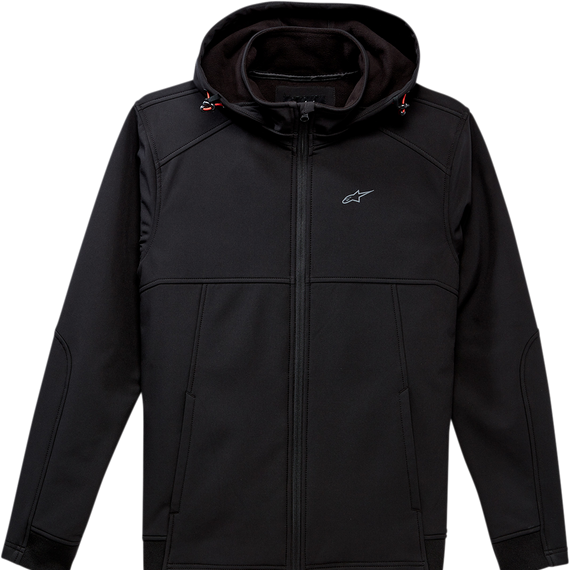 Caracteristicas: 92% Polyester/8%Spandex woven fabric with fleece, waterproof Soft surface wind stopper softshell jacket with moto styling Removable hood with bungie adjusters On seam hand pockets, half rib cuffs and rib inset hem Internal main label and external label branding HD logo at left sleeve