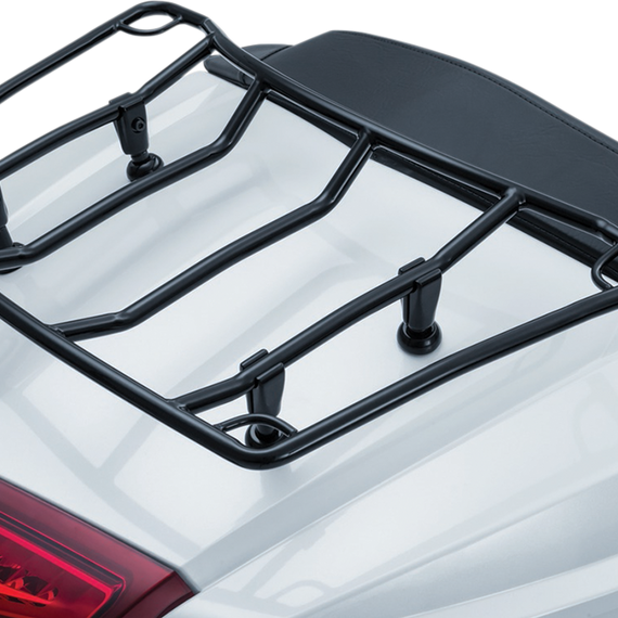 Caracteristicas: Uses adjustable mount standoffs; can be mounted to any trunk lid, flat or curved Built-in corner loops keep luggage secure 1/2" tubular design allows use of flag mounts Kit includes a pair of mount extensions to fit the rack to trunk lids with a steep downward rear swoop, or lids with a trunk lid spoiler installed Measures 21" W x 12" L