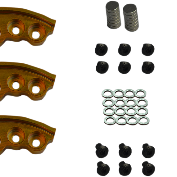 Caracteristicas: Fully-adjustable clutch weights allow modifying of clutch to match riding style and conditions Uses your stock P-drive clicker Adjustable from 48g-81g Weight kit includes: adjustable weights (48g), magnets (1.3g), short pivot bolt (12.8g), long pivot bolt (15.4g), pivot bolt washers (1.1g), long tuning screws (1.8g), short tuning screws (1.2g), tuning screw washers (0.3g) and a 4mm Allen wrench