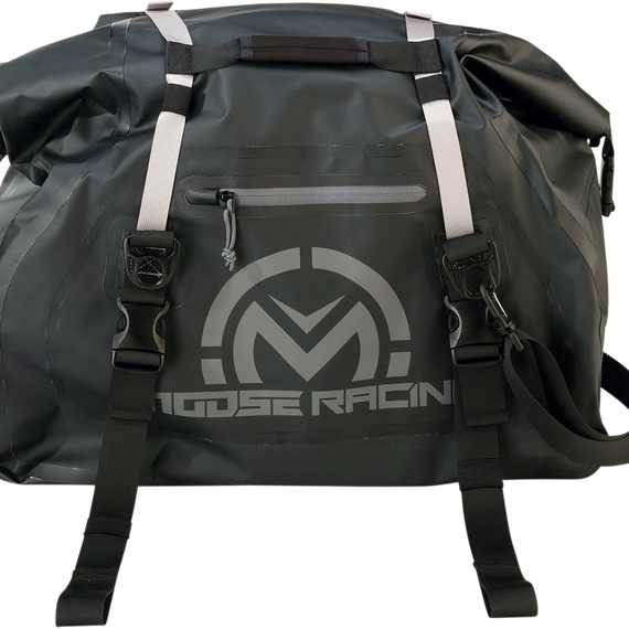 Caracteristicas: Constructed from heavy-duty waterproof tarpaulin Durable heat welded seams Heavy-duty ITW quick-release buckles YKK water resistant zippered external pocket perfect for gloves or spare parts Roll down top design creates waterproof seal Coated tarpaulin material is easy to spray and wipe clean Dual compression straps for extra secure closure or for storing spare gear externally Universal mounting