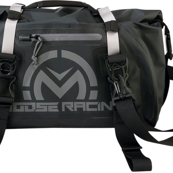 Caracteristicas: Constructed from heavy-duty waterproof tarpaulin Durable heat welded seams Heavy-duty ITW quick-release buckles YKK water resistant zippered external pocket perfect for gloves or spare parts Roll down top design creates waterproof seal Coated tarpaulin material is easy to spray and wipe clean Dual compression straps for extra secure closure or for storing spare gear externally Universal mounting