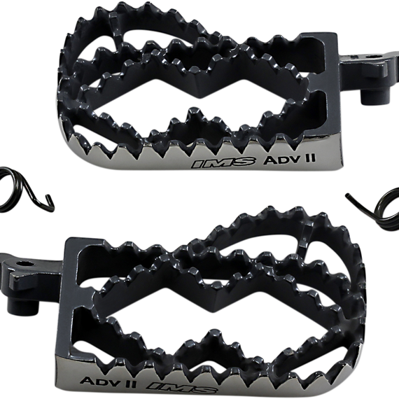 Caracteristicas: Designed specifically for Adventure riders Cast stainless steel construction Powder-coated/polished finish Large overall length and increased width provide additional comfort and handling Superior patented mud-relief tooth design Made in the U.S.A.