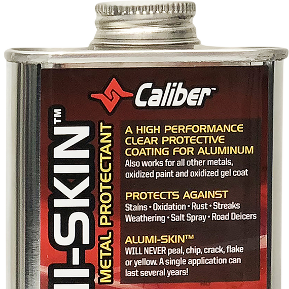 Caracteristicas: Clear protective coating for all types of metals including aluminum, cast iron, copper, brass, bronze, steel and stainless steel Restores appearance, and preserves and protects against stains, oxidation, rust, streaks, weathering, salt spray and road de-icers Alumi-Skin™ will never peal, chip, crack, flake or yellow. It is highly corrosion-resistant, and a single application can last several years Highly cleansable surface Made in the USA