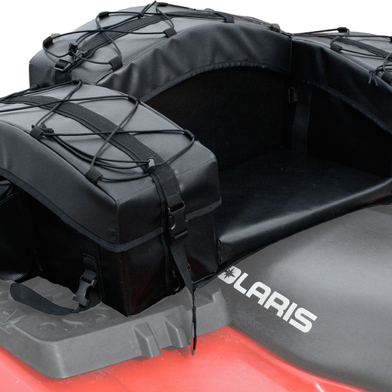 Caracteristicas: Heavy-duty reinforced polyester fabric design reinforced with an arched steel frame Arched steel frame keeps the bag in shape, no matter how much gear is in it Consistent, gapless 1" weatherproof seal keeps contents dry and dust free Zipperless design, fully removable lid allows access to the bag from the front, back, left or right sides; remove the lid for unobstructed access to any part of the bag Bag includes top bungee straps, two expandable drink holders, internal organizer pockets, front pockets and a removable padded seat