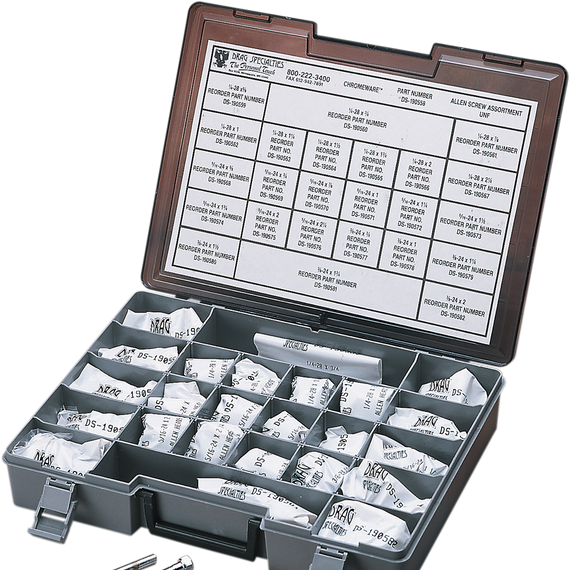 Caracteristicas: Kit contains 24 sizes of fine-thread bolts Made in the U.S.A.