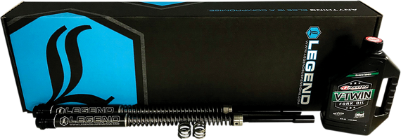 Caracteristicas: Includes two mono-tube, dual-chambered fork damper cartridges Cartridges have nitrogen chambers with internal floating pistons Performance spring rate Machined 303 Stainless threaded pre-load adjuster Increased pre-load range allows fine tuning for various riding styles and weights Ride quality is smooth and controlled Improves stability, cornering and traction Eliminates front-end dive during aggressive braking and maneuvering Firm feel for high-speed sweeping turns Eliminates bottoming out on large bumps or potholes Reduces dragging floorboards and pegs Designed for optimum performance with Legend rear suspensions Includes Maxima Racing Oil in cartridge and quart bottle Lifetime Warranty Made by hand in Sturgis, SD USA