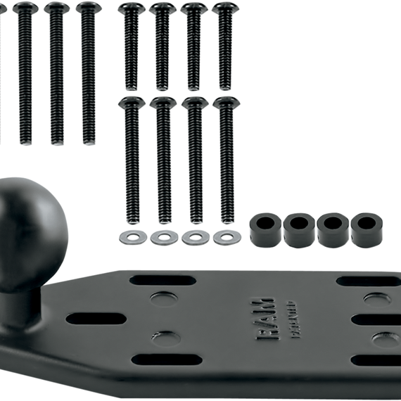 Caracteristicas: Fits cleanly over your existing reservoir cover with the 1" ball centered Made of die-cast aluminum with an over-molded rubber ball Easy installation Each kit includes black oxide SM420 screws (M4 x 20mm hex drive stainless steel machine screw), black oxide SM430 screws (M4 x 30mm hex drive stainless steel machine screw) and black oxide SM435 screws (M4 x 35mm hex stainless steel machine screw) Powder-coated marine-grade aluminum