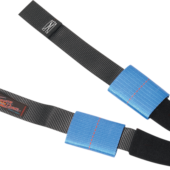 Caracteristicas: A hassle-free way to secure motorcycles; virtually eliminates the possibility of damage to bodywork Simple, quick and very easy to use; mounts on the grips and keeps tie-downs away from the body Nylon webbing has tensile strength of over 5,500 lb. Can be used on wide variety of motorcycles Made in the U.S.A.