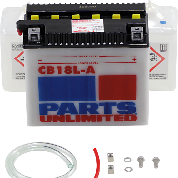 • Kit includes battery, pre-measured acid pack, red filler tube, hardware kit and clear vent tube