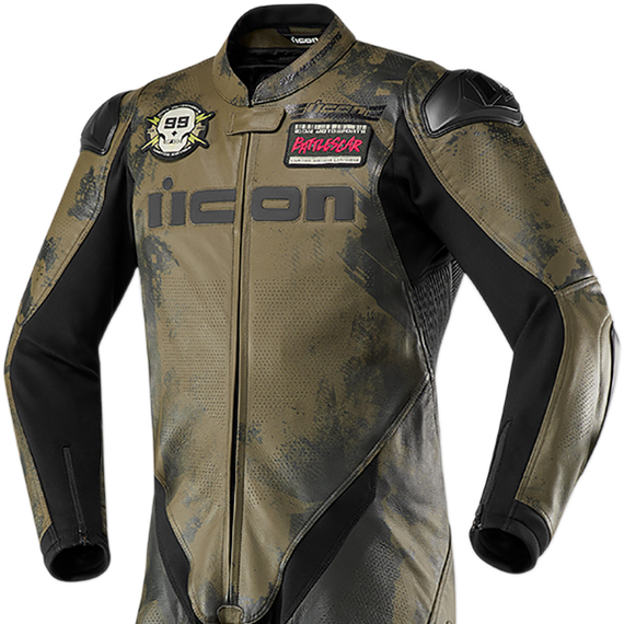 Caracteristicas: Constructed of a 1.1-1.3mm TracSpecª leather chassis ICON Attack Fit (pre-curved arms and legs) Reinforced perforation zones, and integrated TPU speed hump, shoulders, elbows & kneecaps The Hypersport Battlescarª includes a full suite of D3O¨ impact protectors (shoulder, elbow, back, hip & knee) Four-way stretch material and accordion paneling in the flex zones ensure a comfortable and contoured fit in a full tuck position Neoprene wrists and ankles are designed for ease of use and reduced cuff bulk The removable, washable liner allows you to keep your gear smelling fresh, even when you don't Replaceable knee pucks OG TPR chest logo