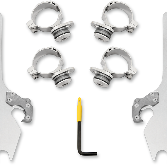 Caracteristicas: Angle Adjustable Model specific no-hassle installation, then on-off without tools A pair of glass-filled nylon latches lock it down until the spring loaded "Trigger-Locks" are intentionally disengaged Made exclusively of electrocoated aluminum and stainless steel, with stainless steel fasteners Anchoring hardware is the same for all windshields and fairings for each bike Made in the U.S.A.