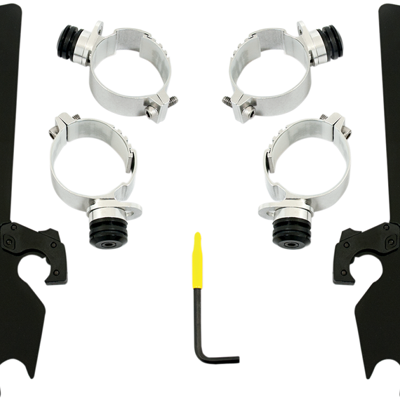 Caracteristicas: Angle Adjustable Model specific no-hassle installation, then on-off without tools A pair of glass-filled nylon latches lock it down until the spring loaded "Trigger-Locks" are intentionally disengaged Made exclusively of electrocoated aluminum and stainless steel, with stainless steel fasteners Anchoring hardware is the same for all windshields and fairings for each bike Made in the U.S.A.