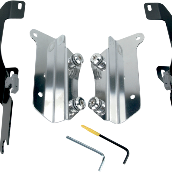 Caracteristicas: Angle Adjustable Model specific no-hassle installation, then on-off without tools A pair of glass-filled nylon latches lock it down until the spring loaded "Trigger-Locks" are intentionally disengaged Made exclusively of electrocoated aluminum and stainless steel, with stainless steel fasteners Anchoring hardware is the same for all windshields and fairings for each bike Made in the U.S.A.