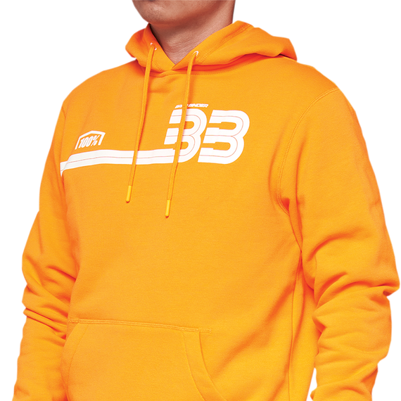 Caracteristicas: Screenprinted BB33 and 100% logos Kangaroo-style pocket on front Self-hood lining and contrast round drawcords with plastic tipping Athletic-style overlock stitching at critical seams Mid-weight 80% Cotton / 20% Polyester brushed-back fleece hoodie